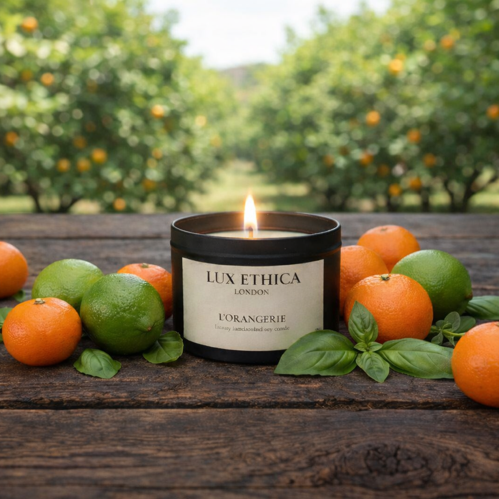 "Love Lux Ethica London®'s L'Orangerie candle, which has given our conservatory/boot room a sophisticated, fresh citrus scent. Used it multiple times, with the lid as a base, on a wooden tray. The sleek black tin suits any room and is reusable as a storage tin. Going to order some more scents in the medium size as gifts, and try the triple wick candle for a larger room."